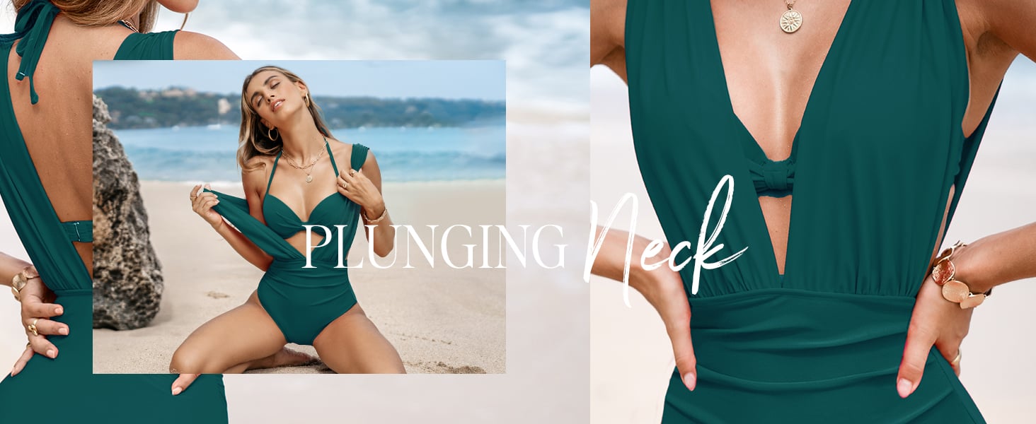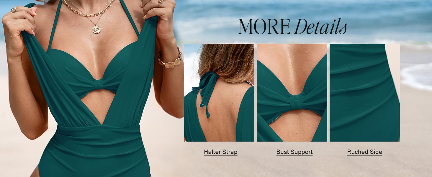 🌴This Casual Beachwear Deep V Neck High Bust Support Swimwear will turn heads! 🩱You will love how versatile it is. Wear it as a one-piece or two-piece.. You are going to look amazing! 😍🌊This swimsuit combines a plunging neckline with a supportive underwire bikini top that can be worn together or separately. It has molded cups, a high bust support, and wide straps to keep you comfortable and stylish on the beach.🌟🩱4 WAYS TO WEAR IT!Four ways to wear it! Discover how you can create various styles.Pair the cropped halter top with linen pants for brunch, rock the full set with a sarong at sunset, and effortlessly transform the halter into a strappy crop top for post-swim style.WHY ITS A WARDROBE GAME-CHANGER✔️Sculpt Smooth: High-waisted styles shape hips/waist; ruching flatters curves✔️No Wardrobe Malfunctions: Double-lined cups + grip elastic✔️Size-Inclusive: 5'1"-5'9" hackable via adjustable tiesPRO TIPTested through 2000 saltwater dunches. Hand-wash in cold water the ruching stays snatched for 3+ summers!Our motto, "Live Life on the Beach", encapsulates the essence of enjoy life. Since inception in 2015, we enthusiastically believe that with the right swimsuit and a little sunshine, life becomes an adventure!One Piece Plunging Neck Swimsuit with Wide Halter Straps and Ruched SideWomen's One Piece Swimwear with High Bust Support Underwire offers an elegant look while ensuring comfort and support.FEATURES💕About Cup Style:With Molded Push Up Cups.Experience ultimate confidence and support with this swimsuit's molded push up cups. Elevate your beach day game and take a risk with this edgy feature.💕Design:This Bikini Top Plunging Ruched Swim Set Features a Plunging Neck Complemented by Wide Halter Straps for a Flattering Look. The Underwire Ensures High Bust Support. The Ruched Tummy Control Design Offers a Slimming Effect, and the Back Hook Closure Provides a Secure Fit.💕Occasion:Best Holiday Gifts for Mom, Wife, Girlfriend or Women You Love. Perfect for Tropical Vacations, Summer, Beach Pool, Honeymoon, Cruise.Product DetailsFabric type: 80% NYLON, 20% SPANDEXClosure type: Hook EyeSize: S, M, L, XLColor: Midnight Blue, Pink, Green, Black💐💐OUR GUARANTEE🌍Insured Worldwide Shipping: Each order includes real-time tracking details and insurance coverage in the unlikely event that a package gets lost or stolen in transit.💰 Money-Back Guarantee: If your items arrive damaged or become defective within 15 days of normal usage, we will gladly issue out a replacement or refund.✉️ 24/7 Customer Support: We have a team of live reps ready to help and answer any questions you have within a 24-hour time frame, 7 days a week.🔒 Safe Secure Checkouts: We use state-of-the-art SSL Secure encryption to keep your personal and financial information 100% protected.💖OUR ORIGINAL INTENTIONProvide interesting, fashionable and high-quality products in the world. We will do our best to provide customers with excellent customer service support, because we attach great importance to absolutely zero-risk customer satisfaction.