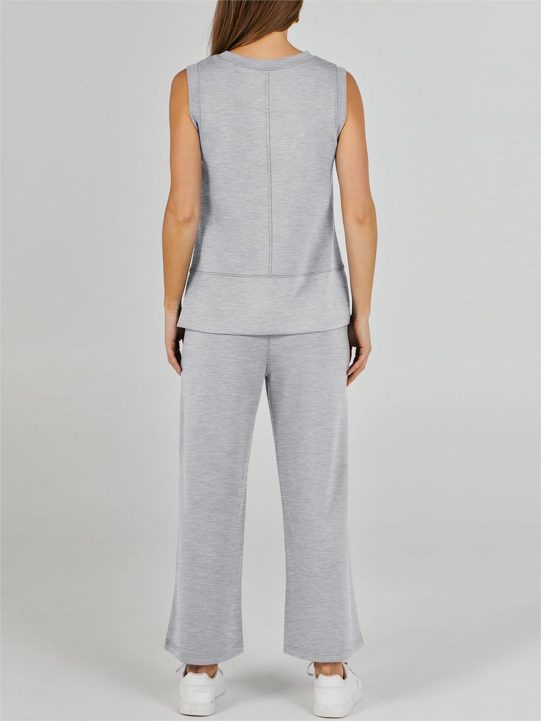 Women's Casual Sleeveless Slit Hem Wide Leg Suit Set