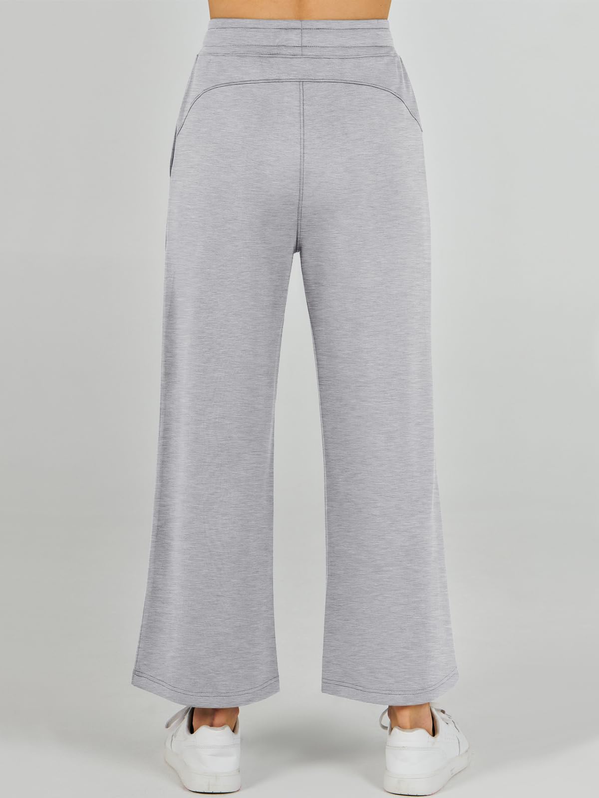 It's a very soft fabric, it's stretchy, it has pockets wide leg, it's got the side slits there, you can actually, tuck the top in the front if you want to.