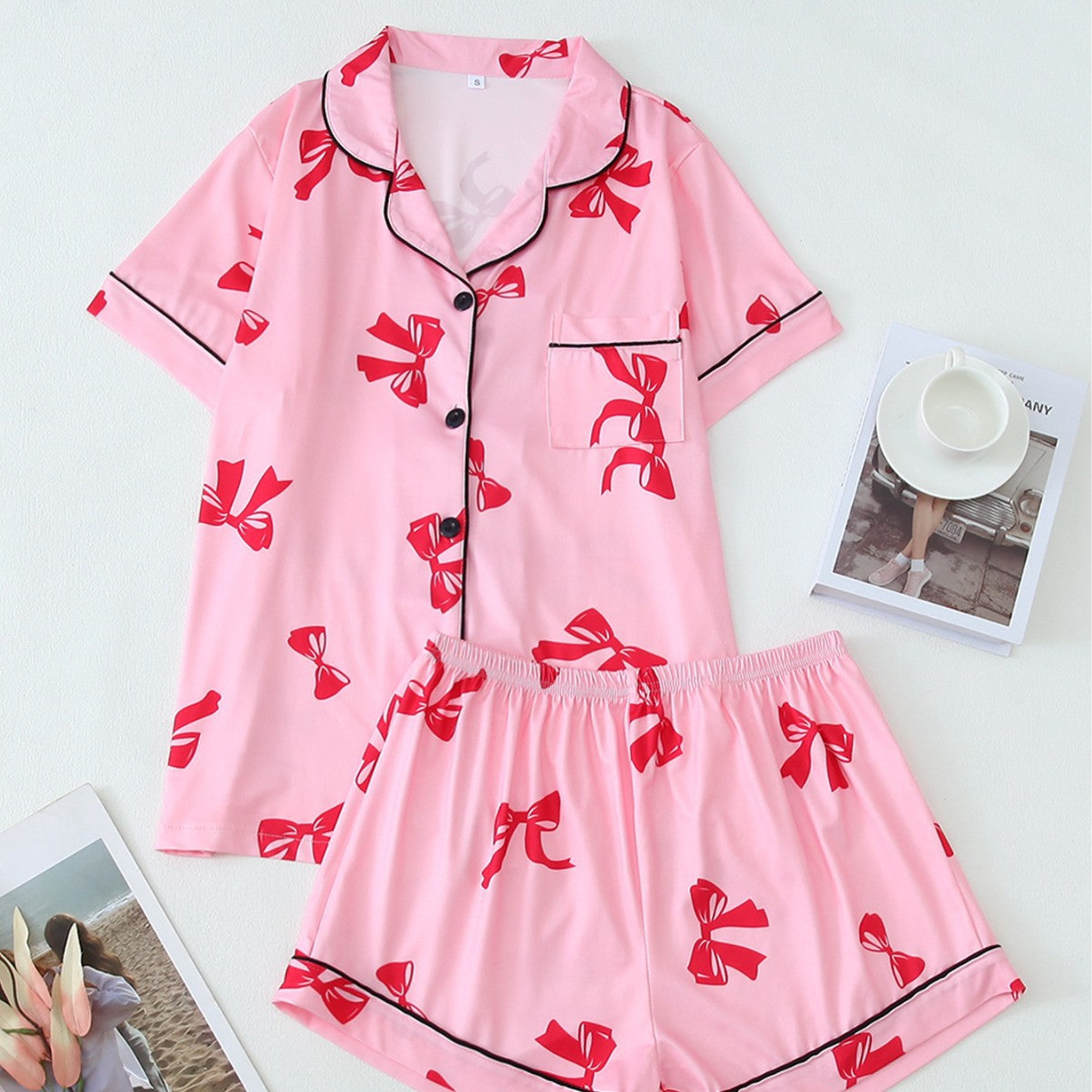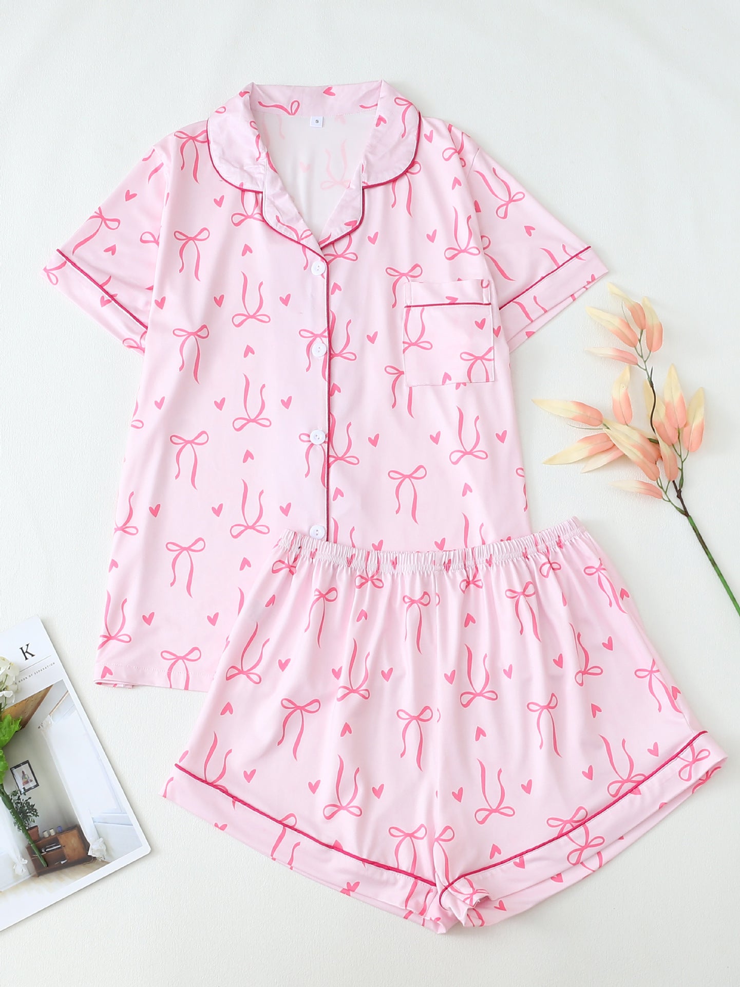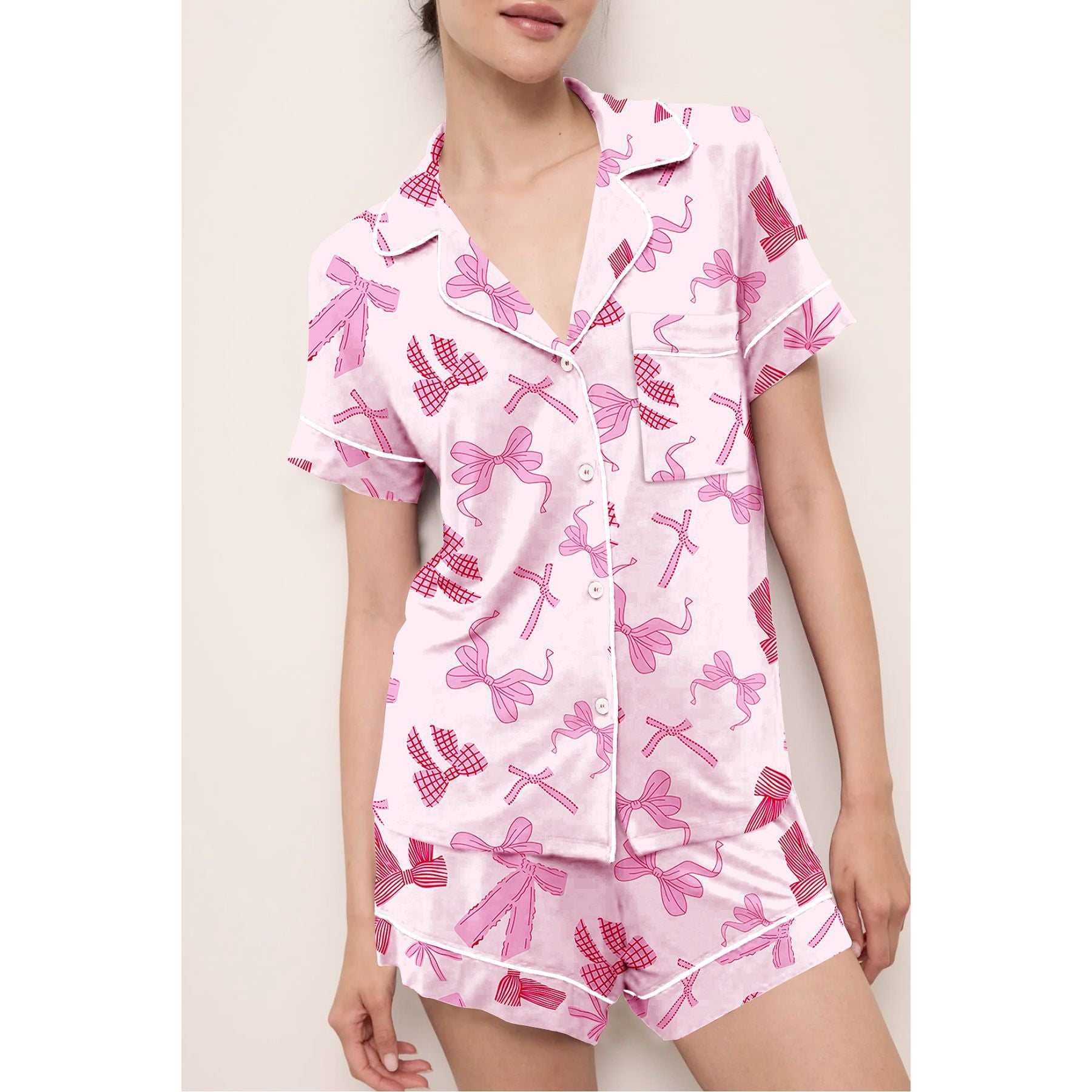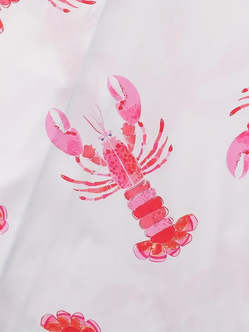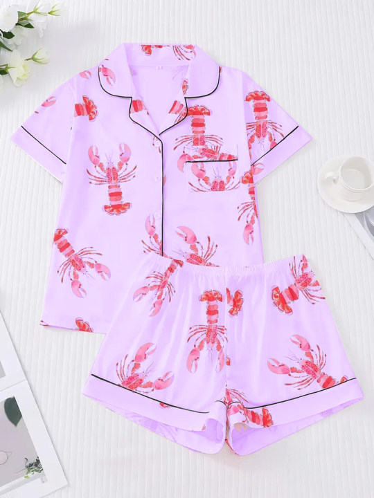 Women's Pink Lobster Print Pajamas Button-Up Short Sleeve and Shorts Homewear(BUY 2 FREE SHIPPING)