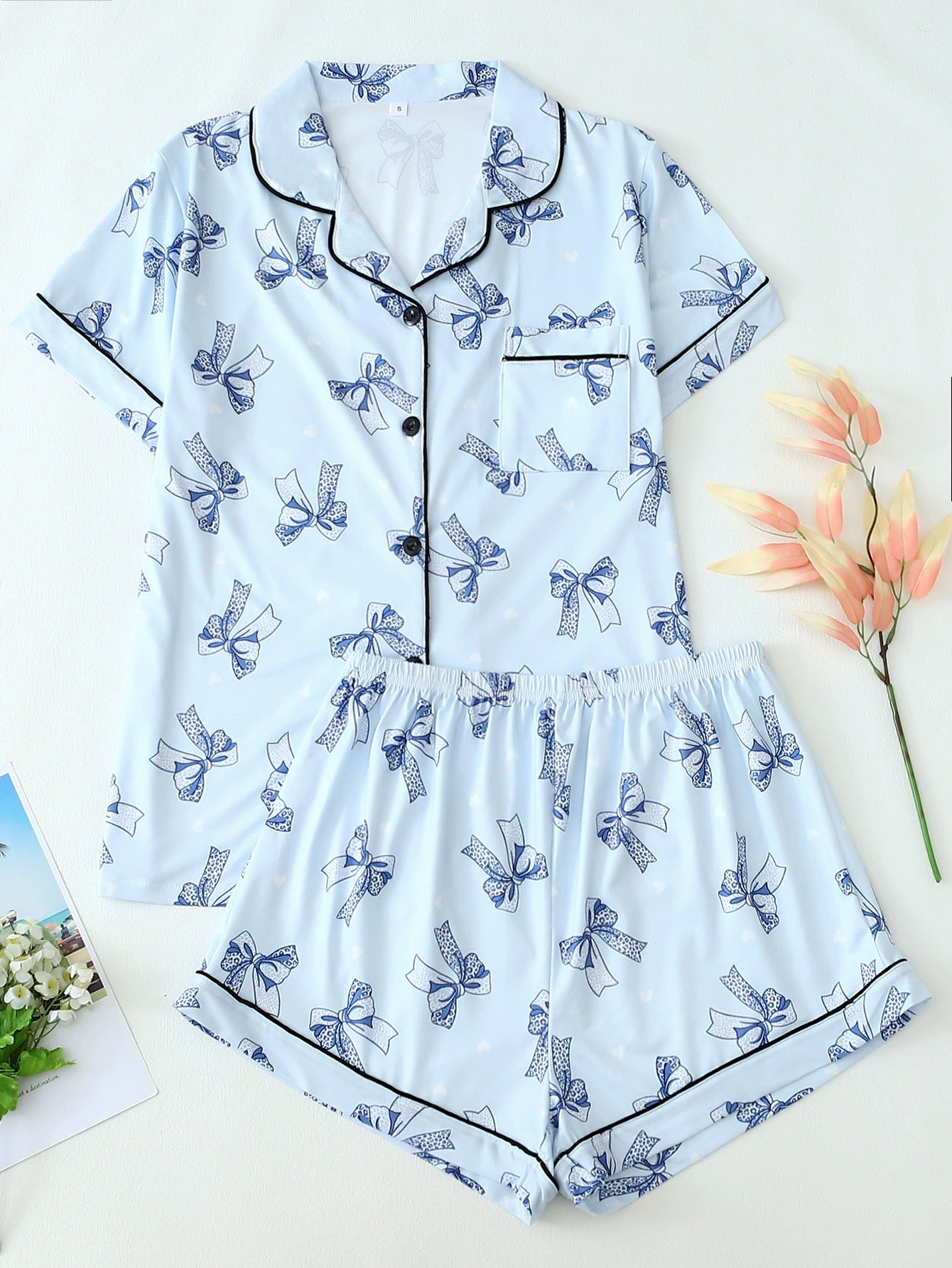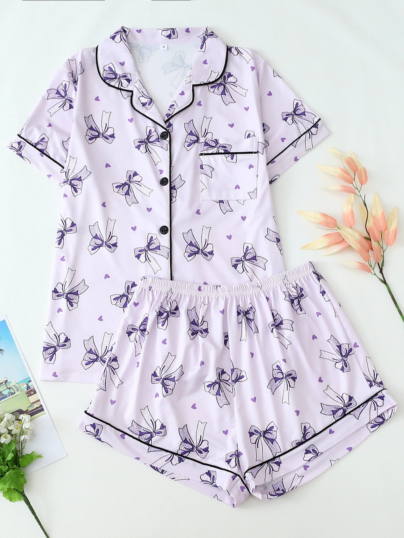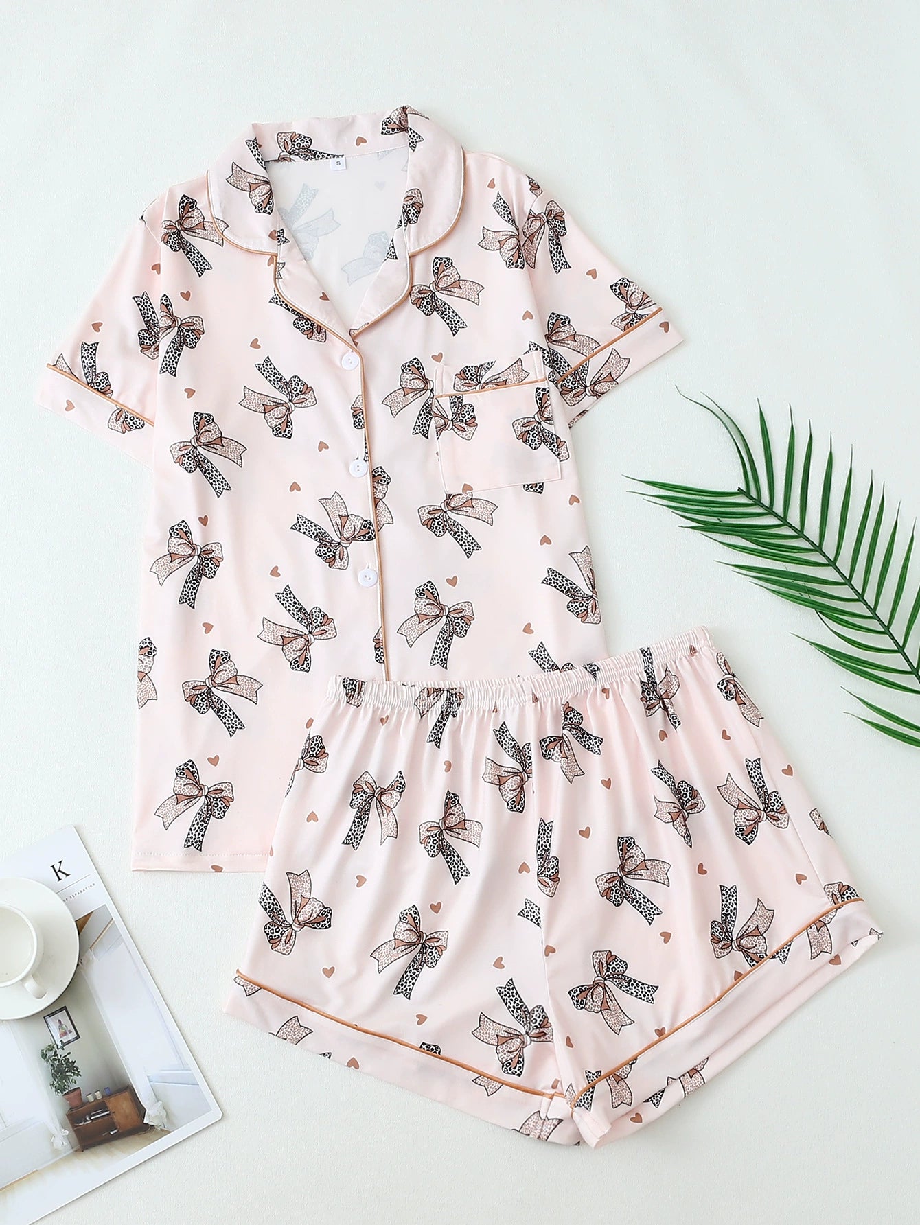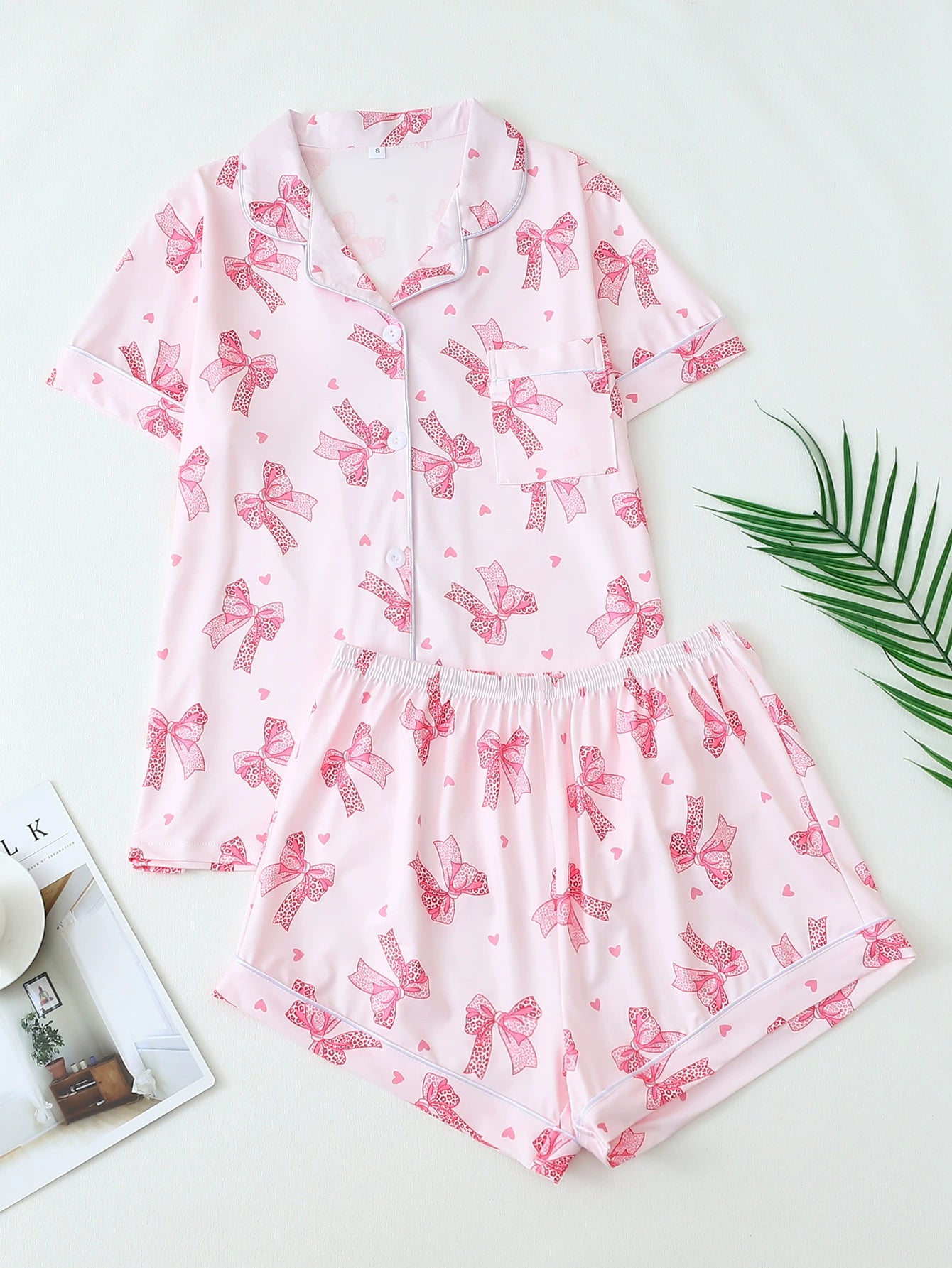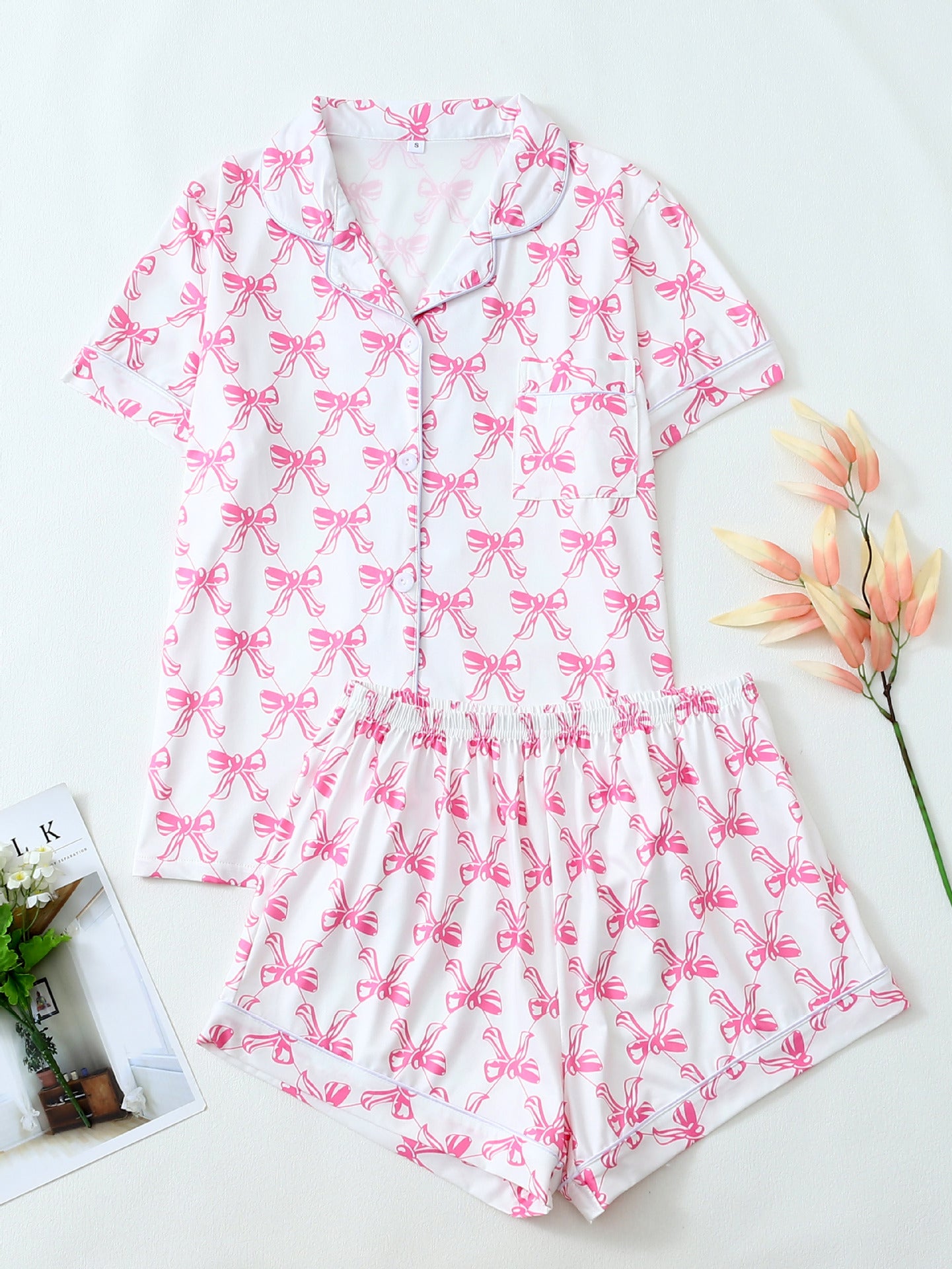 Women's Pink Lobster Print Pajamas Button-Up Short Sleeve and Shorts Homewear(BUY 2 FREE SHIPPING)