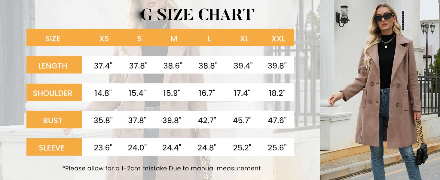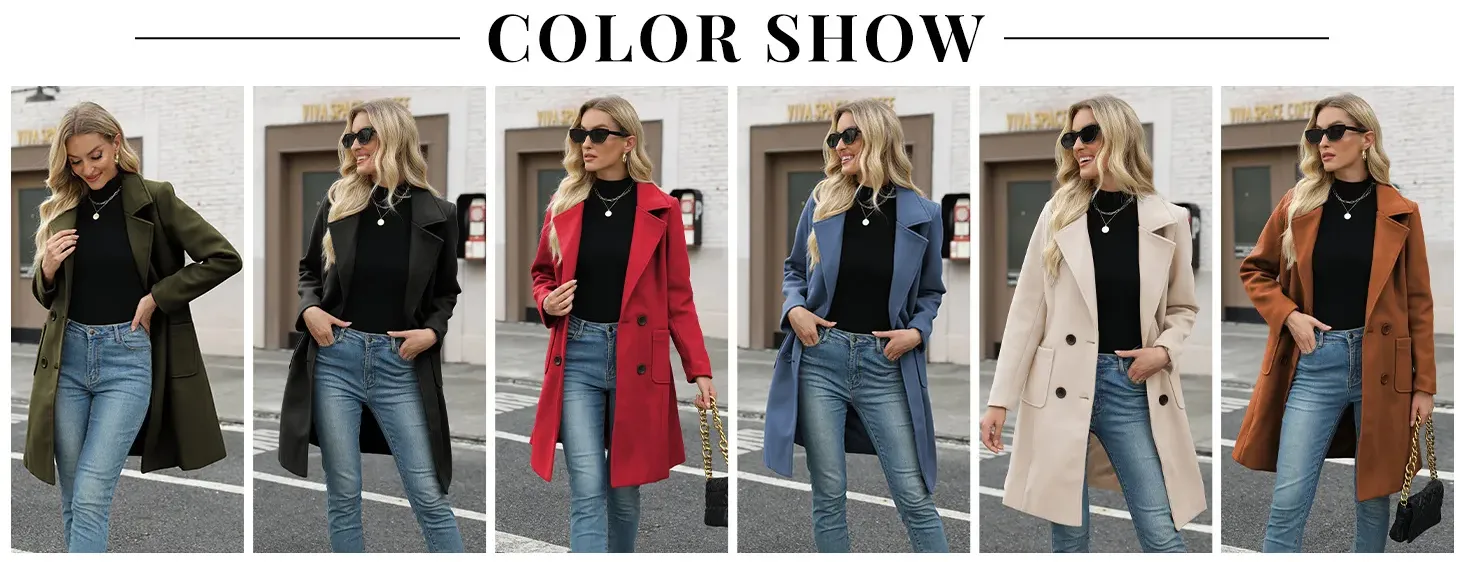 ChicBeautyy Women Winter Wool Blend Camel Mid-Long Coat Notch Double-Breasted Lapel Jacket Outwear(Buy 2 Free Shipping)