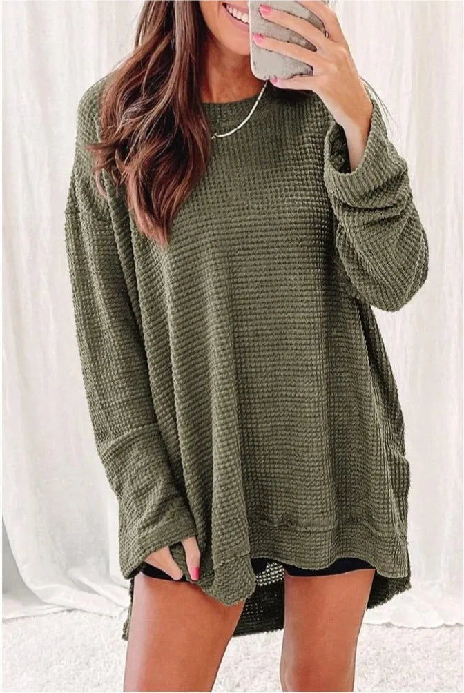 Virina Supergranda Vafla Trikita Ĉemizo (Aĉetu 2 Senpagan Sendo)