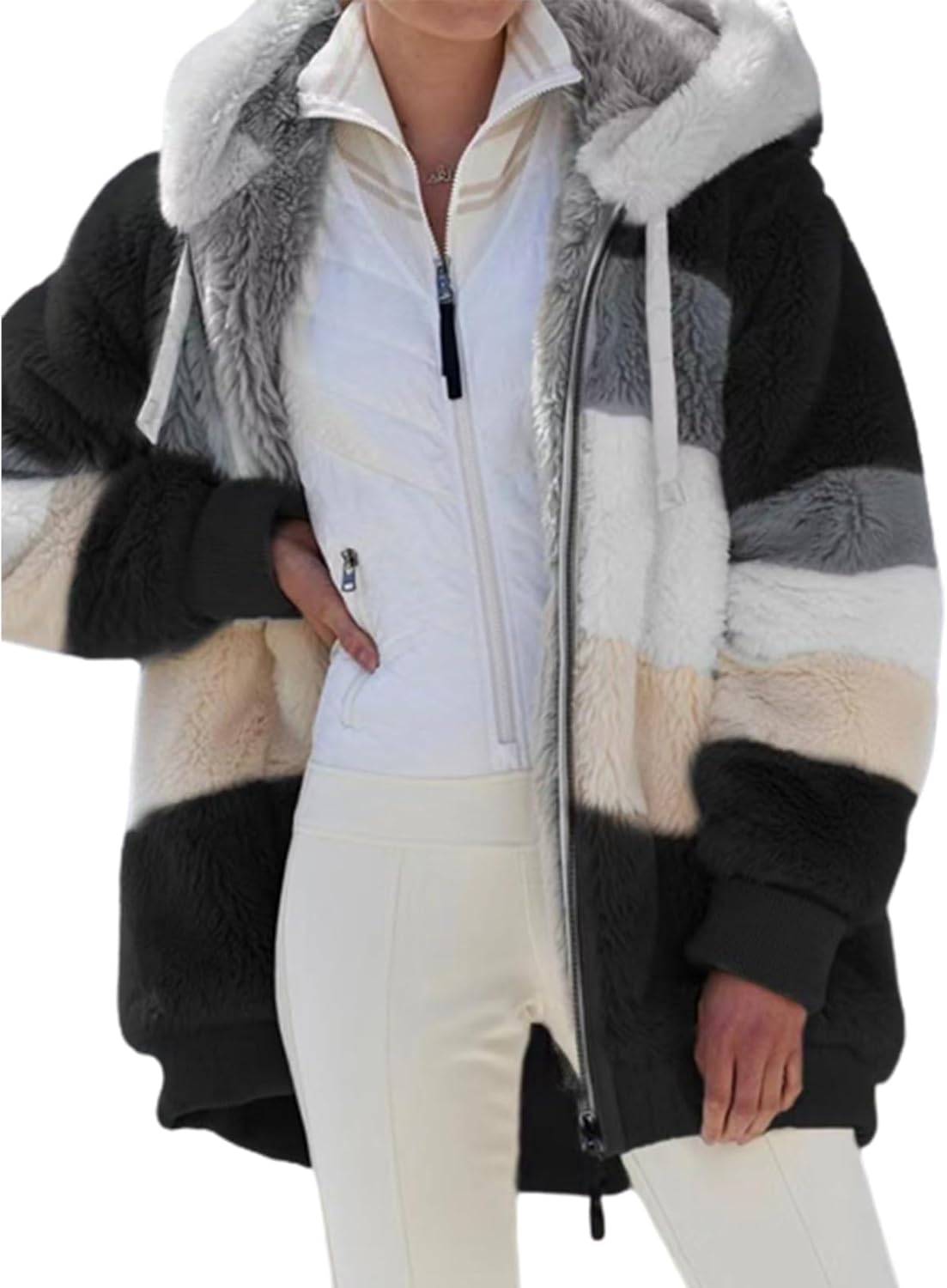 Chicbeautyy Loose Thick Plush Hooded Jackets