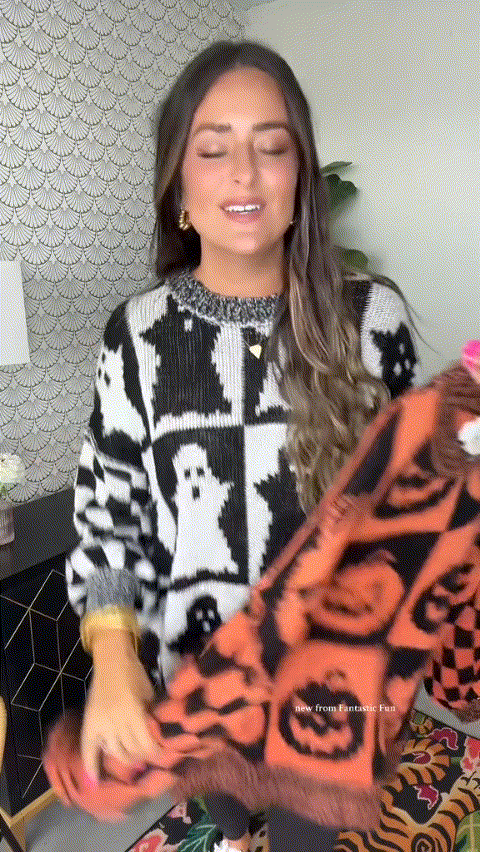 A whimsical fusion of classic charm and Halloween spirit, cozy meets festive charm. This sweater is not just a garment but a celebration of the autumnal season, perfect for chilly evenings by the bonfire or casual outings during the Halloween festivities.